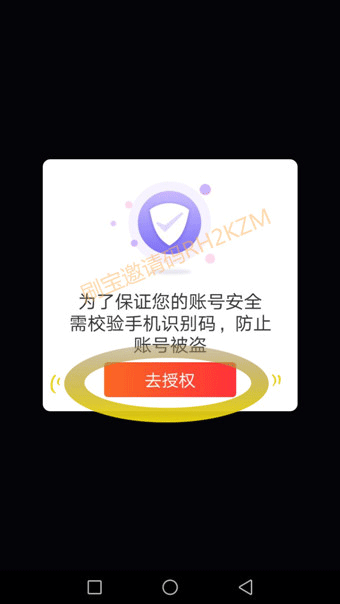 第二步:打开刷宝APP后要求去授权手机号码,点击”去授权”