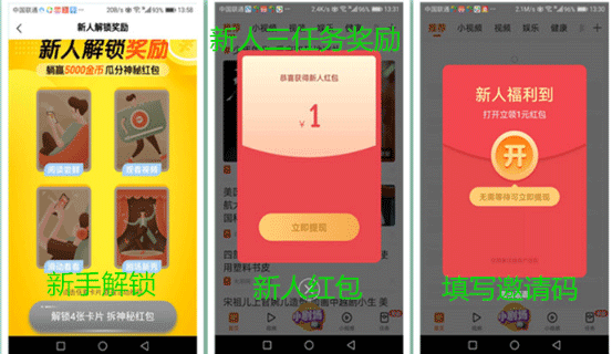3.填写邀请码:新人填写好友邀请码,即可领取1元现金。