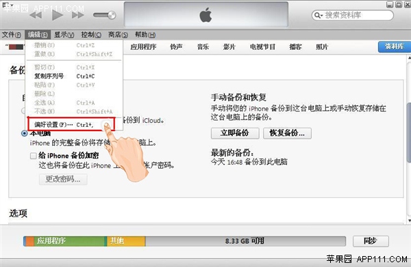 第一步,打开iTunes,点击“编辑”选项中的“偏好设置”。