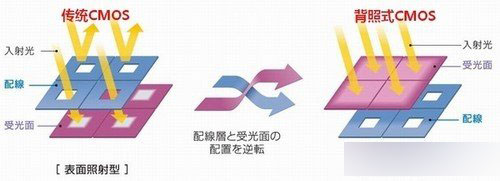 那么为什么背照式传感器的感光能力能够提高这么多呢?那是因为背照式传感器简单来说就是比以往的传感器更薄,具有更佳的画质和更低的噪点等特性。它把感 光层与基质的位置互换,直接与透光面接触,因而减少了中间环节光线的损失,并且在透光面上每个对应的像素表面都改为透镜的形式,更集中地汇聚了外界的光线 到对应的像素点上,减少了像素之间多余的光线干扰,也简称增加了开口率。