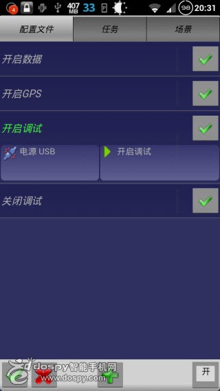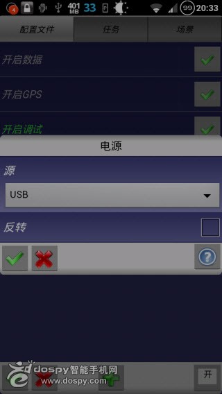 之后再按上述操作添加一个同样的配置,只是注意添加条件时电源要勾选反转单选框,添加操作时USB Debugging要选择Off。如此一来就能体会到插拔数据线时自动开启和关闭调试模式的神奇效果啦。