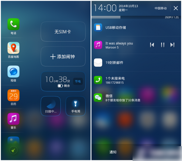 除了全新的扁平化风格外,亮点功能还表现在采用浓烈的色彩,多彩控件与全局主题进行结合;通过公共动画及高斯模糊,加深界面层次,明确空间关系;对内存进行瘦身,严格控制功耗等。