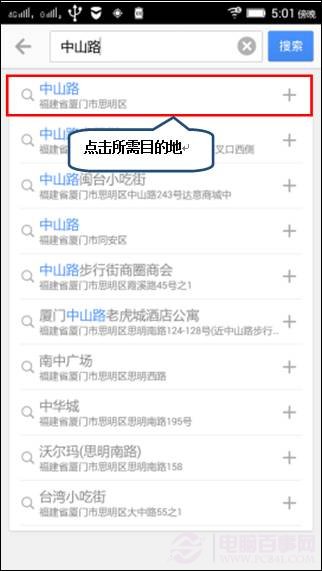 5、在搜索出来的结果中,点击对应的目的地,如下图。
