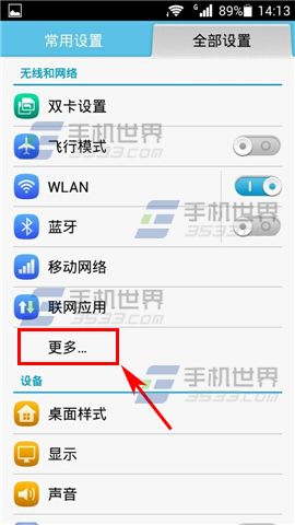 1)打开华为荣耀畅玩4X的【设置】,然后在【全部设置】栏选择【更多】。(如下图)