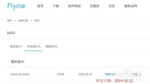 在魅族官方网站Flyme下载页面中,下载bin格式的刷机文件,下载的时候,要注意适配自己的机型以及版本号:如果你喜欢尝试新鲜事物,可以下载体验版,如果你可以注重稳定,则可以下载稳定版。
