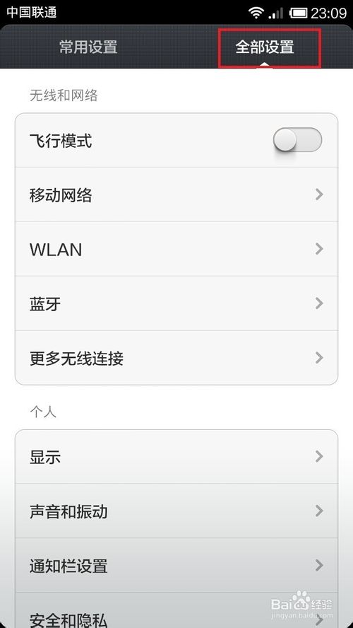 2、点击设置后,我们进入到“全部设置”一栏,在这里我们能够查看所有设置信息。包括我们要查看的漫游状态也在这里。