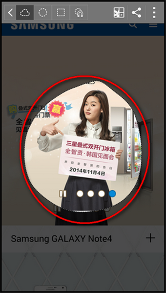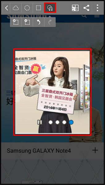 而三星Galaxy Note4上的图像剪辑则可以像剪报一样对图片进行编辑,用S Pen勾勒出屏幕上任一区域进行截图,并进行保存或共享。若想使用该功能,请按照以下方法操作: