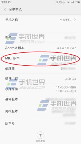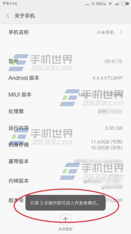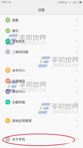 1)打开小米Note手机【设置】点击【关于手机】,连续点击【MIUI版本】。(如下图)