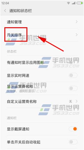 1)打开小米4手机【设置】找到并点击【通知和状态栏】,点击【开关排序】。(如下图)