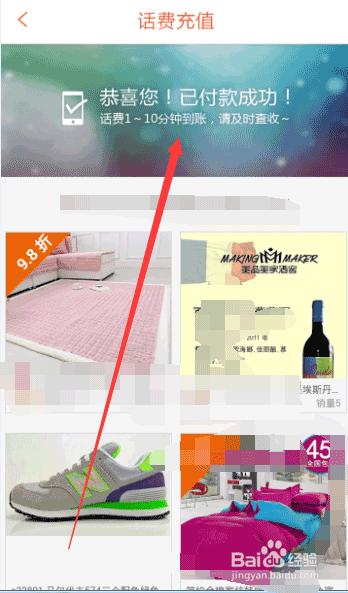 这个时候大家就可以选择支付了,是要用我们的支付宝余额还是余额宝,还是银行支付都行。然后输入支付宝密码,确认充值,就成功了,返回商户就会出现“恭喜你,你已充值成功。”