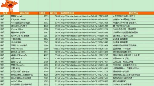 值得一提的是在智能手机方面,目前热门的iPhone 6、小米4、魅族MX4、LG G3、Sony Z3、OPPO N3、Nexus 6、锤子手机、华为Mate 7都在促销之列,但是并非全部都是天猫官方旗舰店。