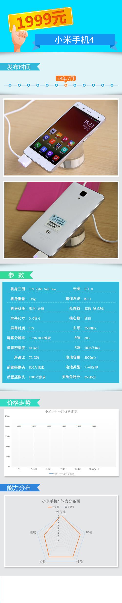 小米在今年的双十一再次刷新各项记录,虽然其中最主要的贡献者并不是小米4,但特别版1799的价格也让抢到的用户们喜笑颜开。虽然在笔者看来小米不会再双十二再次丢出“特别版”的低价格,但一大波货源的补上肯定是少不了的。在这个小米5就要问世的前夕(还要经历发布→发售→抢不着→抢不着→还是抢不着),喜欢小米手机的用户,要不要去买米4,其实不用太过纠结。