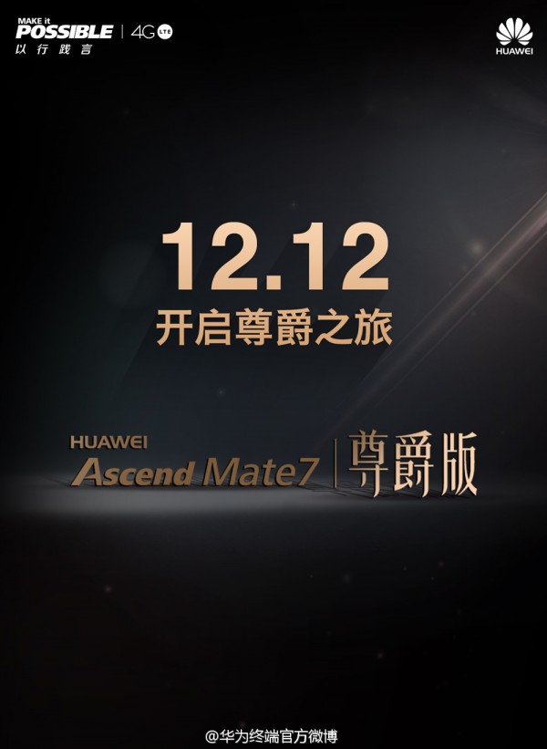 华为今年最令人赞叹的产品非Mate 7莫属,恐怕连华为官方都没有想到该机会这么受欢迎。在位数不过的国产3000元以上产品中,Mate 7目前基本上是一机难求,每次开放购买都是瞬间售罄的节奏。而目前最新的消息则显示,华为准备推出一个新版本的Mate 7,命名为“尊爵版”。