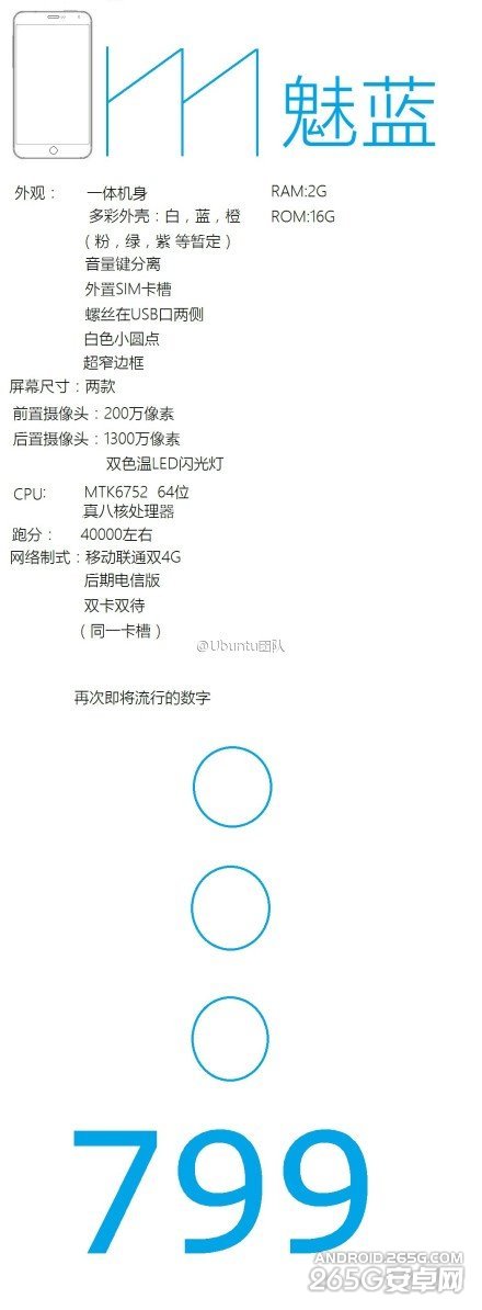 售价方面,虽然此前魅族否认要做799元的手机,不过魅族现在非常喜欢放烟幕弹,在发布MX4 Pro之前魅族也不断暗示Pro价格将超过3000,但实际上却便宜得多。ubuntu团队爆料称魅蓝很可能卖799元!