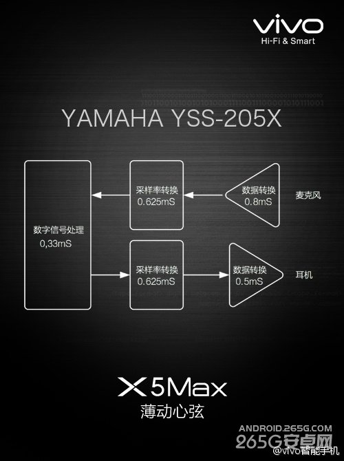 X5Max作为一款K歌神器,为保证实时耳返效果,搭载了YAMAHA混响处理芯片——YAMAHAYSS-205X。依靠独立的硬件方案,vivo将160ms的延迟降低至3-4个ms,旨在为用户提供更愉悦的K歌体验。