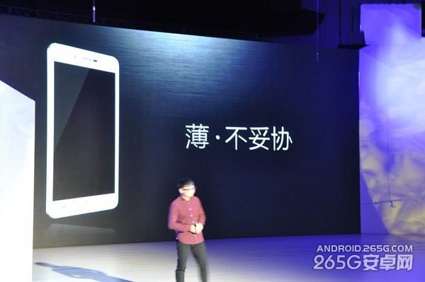 王欣正在介绍单面临界布板技术,这种技术是介于“可能与不可能之间”的技术;以及多梁机翼中框,号称“行业最窄”。。屏幕使用的是1.36mm、“全球最薄”的显示屏幕,2.75mm,全球最薄的扬声器。