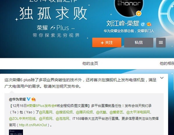 关于华为荣耀6 Plus更多消息,还是关注今晚华为官方的发布会把,年度收官之作,走起!