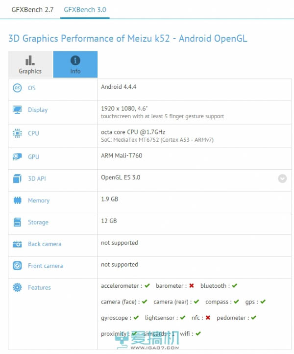 在性能上根据此前GFXBench的跑分数据,魅蓝的研发代号为“K52”,将会1080P屏幕,SoC是MT6752 1.7GHz(八核Cortex-A53),Mali-T760 MP2,2G Ram+16G Rom。