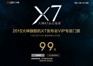 大神X7发布会的VIP门票售价99元,将在今天上午10:08分在酷派官方商城开启抢购,99元VIP门票包含发布会纪念门票和发布会神秘礼品一份。