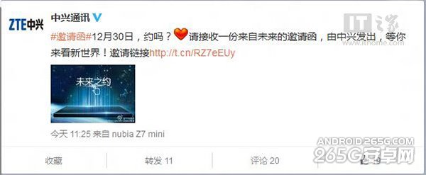 2014年临近尾声,前不久刚刚发布了星星2号语音手机的中兴通讯,今日又再度通过其官微发出邀请函,表示12月30日,中兴通讯还将发布一款新手机。下面我们一起来看看吧!