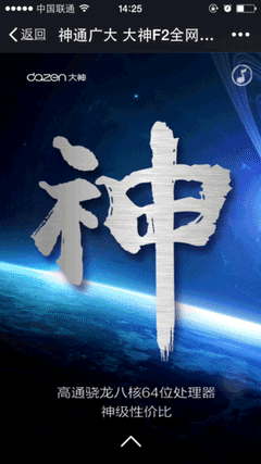 大神将会在明天再北京举行发布会,发布全新的大神F2全网通版,大神F2全网通版是首款千元八核全网通手机,支持电信、移动、联通 三大运营商的4G、3G、2G网络,售价1199元。