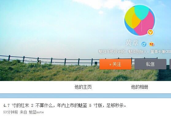 昨天小米公布了699元的4.7寸的红米2,不过这还不算结束,因为本月15日他们还有一场新品发布会。有意思的是,刚刚发布了魅蓝Note的魅族也要在1月继续发力,而现在黄章在其微博上爆料,4.7寸的红米2不算什么,年内上市的魅蓝5寸版,足够秒杀。售价上也会秒杀?