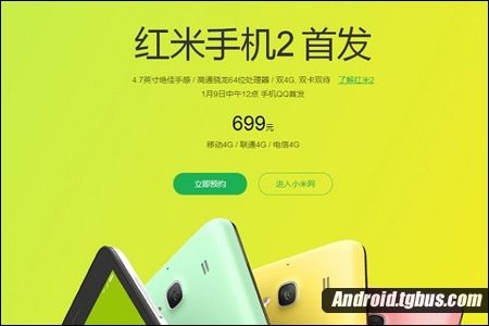 目前据悉红米手机2已经开启预约,预约成功用户可以在2015年1月9日中午12点开始抢购,从目前来看,红米2初期开放购买的应该是移动版和联通版。至于红米2电信版,则应该会在之后开放购买,具体的时间官方还没有正式确定,不过小编相信应该不会让大家等太久的时间,脚本之家会继续为大家关注该的最新动态。