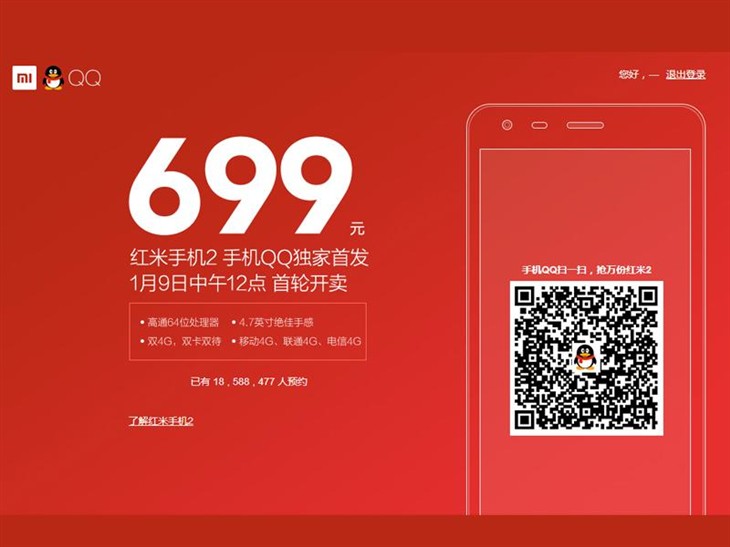 1月9号中午12点,红米手机2将由QQ独家首发开启抢购活动,红米手机2可以说是一款性价比十足的好产品,虽然在外观上依然没有什么起色,但能够搭载MIUI6让它在同等价位产品中体验更加优秀,大家切记今天中午12点,一定不要错过首发抢购活动。