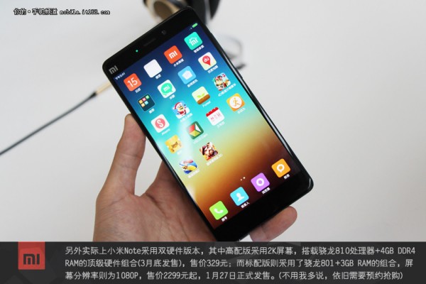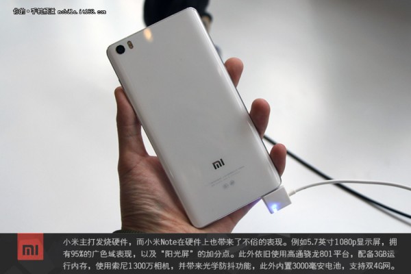 等待许久,终于亮相了。而且,在以往最诟病的外观设计上,改善颇多。出色的屏占比、2.5D前置+3D后置玻璃、6.95mm的机身、铝合金中框...等等,小米新旗舰Note在外观和工艺上相比小米4有了很大的提升。小米Note的三围尺寸155.1mm×77.6m×6.95mm,仅161g,在配备5.7寸大屏幕的同时,机身要比iPhone 6 Plus更为轻薄。