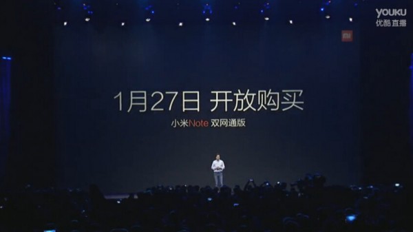小米Note双网通版定于1月27日上市(下下周二)开放购买,
