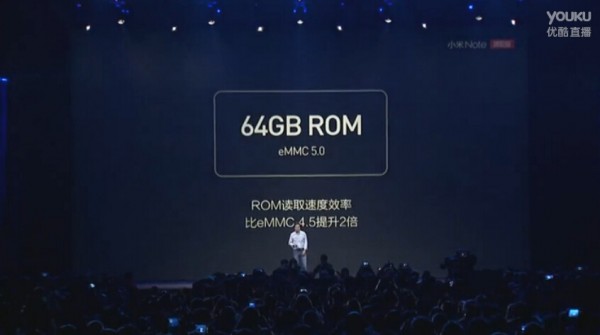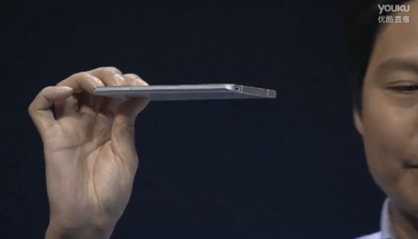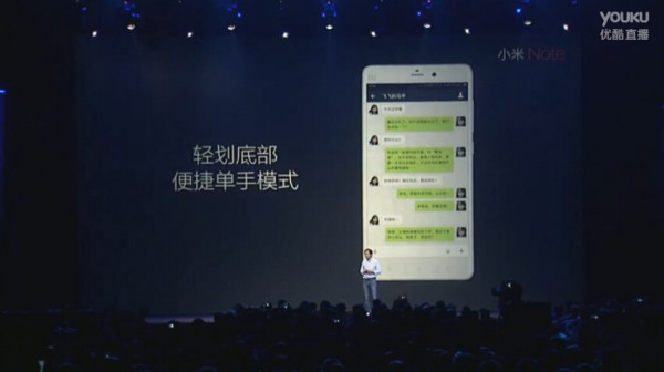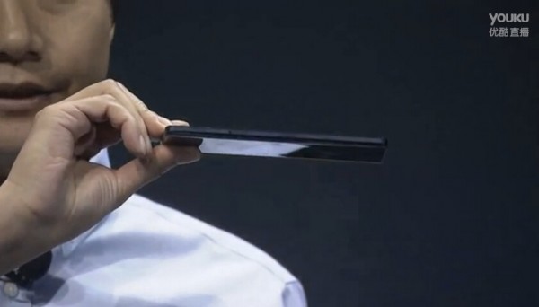 小米Note真机展示环节,雷军展示了小米Note独特的外观: