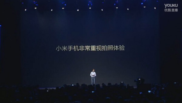 前置摄像头采用400万像素大像素感光元件,在自拍模式下可以拍出高质量照片,雷军现场演示如何用剪刀手来卖萌自拍(倒计时自拍)并发送到微博,小米采用了与HTC One相同的400万像素、单像素尺寸2μm的传感器。