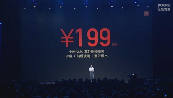 由于小米Note采用了2.5D和3D玻璃,维修成本较高,因此小米准备了碎屏险,价格199元/年,进水和前后碎屏均保修。