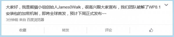 近日微博上自称盘古团队前成员的技术大牛宣布成功破解WindowsPhone 8.1/10的程序加密,并计划在1月微软Windows 10发布会后正式放出破解工具。据了解,该工具允许用户直接破解专门为WP8.1开发的软件游戏,并生成可以自行安装的appx安装包。微软在WP8.1以后更新了程序框架,采用和桌面Windows相同的RT框架,性能优化更加明显,已经有不少软件游戏采用这种框架开发,比如大热的《我的世界》等等。