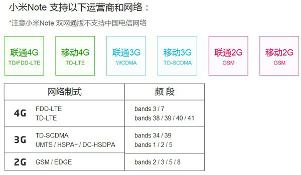 小米Note支持运营商与制式一览