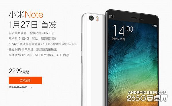 小米不久之前发布了一款新机小米Note手机,这款智能手机将在1月27日开卖,小米Note手机售价为2299元。下面我们一起来参与吧!