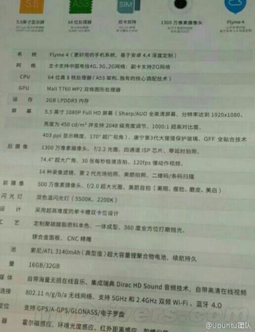 1月28日,魅族除了要发布第二款魅蓝手机外,还会带来发布魅蓝Note电信版。今日有用户给出魅蓝Note电信版详细配置,该机配置跟原机差不多,处理器还是MT6752,因为其GPU为Mali 760 MP2(联发科即将推出支持CDMA的全网SoC MT6753/MT6735)。