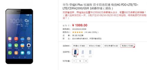 今天对于电信用户来说可谓“过年了”,不仅仅有小米4的4G网络电信版在中午12点开启抢购,荣耀6 Plus的电信版也在今天首发。根据官方的消息,荣耀6 Plus电信版将于今天上午10点在华为官方商城和京东商城上同步发售,售价为1999元。