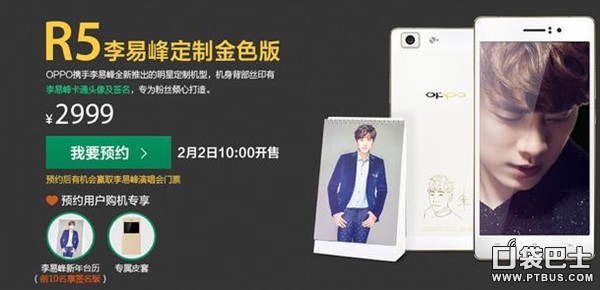 另外金色李易峰定制版OPPO R5也于今日开启预约,售价同为2999元,其背部还印有李易峰卡通头像以及签名,各位李易峰的“蜂蜜”可有福了。另外凡是预约成功的用户都将获得李易峰新年台历一份和专属皮套,并有机会赢得李易峰演唱会门票!而前十名预约成功的用户更是可以获得李易峰签名版新年台历。此外购买金色版/李易峰定制版OPPO R5的用户参与微博晒单还可赢得价值148元的蓝牙音箱一台,精彩不容错过,详情请登陆OPPO官网了解。