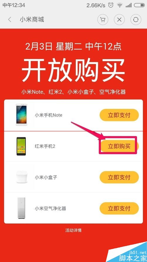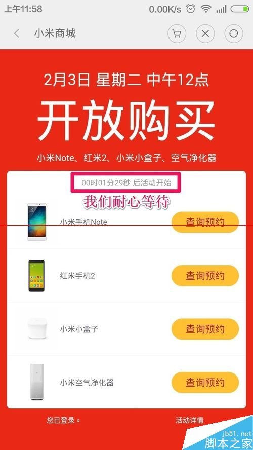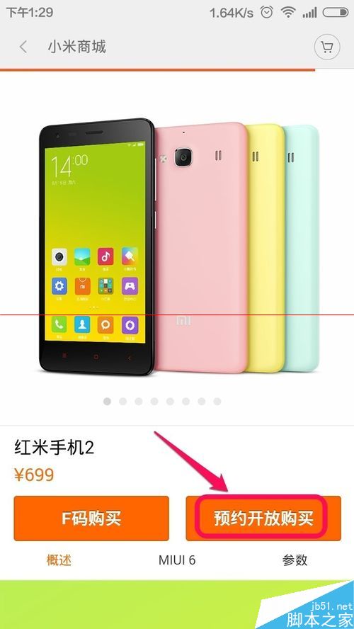 1、到了我们预约的时间以后,我们登陆小米官网或者手机小米商城进行抢购!小编使用手机进行抢购的,所以小编打开小米商城,然后点击自己预约的商品!然后点击预约开放购买!