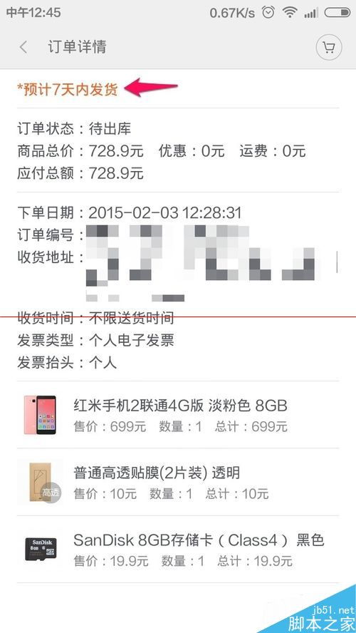 8、好了,小编购买的红米手机2如图,我们等待收货就可以了!