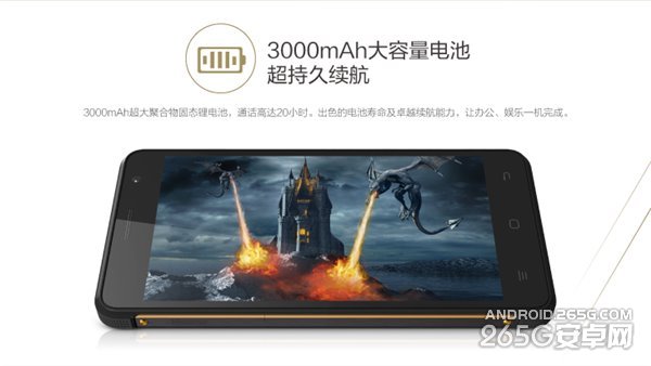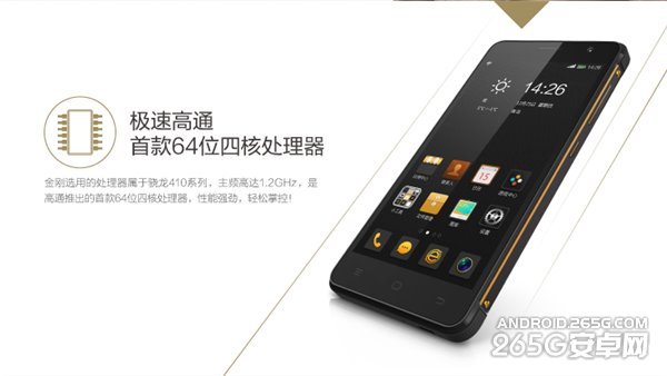 具体配置方面,海信金刚采用5英寸720P显示屏;搭载高通64位1.2GHz四核处理器;辅以2GB RAM + 16GB ROM存储组合;800万像素主摄像头,F/2.0光圈,200万像素前置摄像头;运行基于Android 4.4的Vision UI 2.0;配3000mAh电池;支持杜比音效;支持GSM/TD-SCDMA/TD-LTE网络。