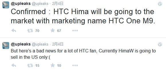 HTC爆料大神Upleaks在twitter发文称,HTC One M9的WP版本将和TC One M8一样,命名为HTC One M9 for Windows,并且可以升级到Windows 10。