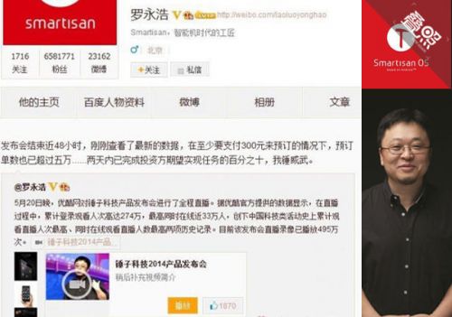 2014年5月20日晚上,锤子手机在官网宣布开始接受预订。随后,老罗带来了锤子手机预订量的播报:第一天预订量超过3万台,第二天到5万台。在老罗喜大普奔的同时,不少网友借小米的数字来调侃锤子:“想当年红米Note预订量分分钟超过百万台,5万台的量还真算不上什么”。不过,锤子手机此次与小米不同的是采用了收取300元预订费的方式。所以锤子手机5万台的预订含金量要高不少。