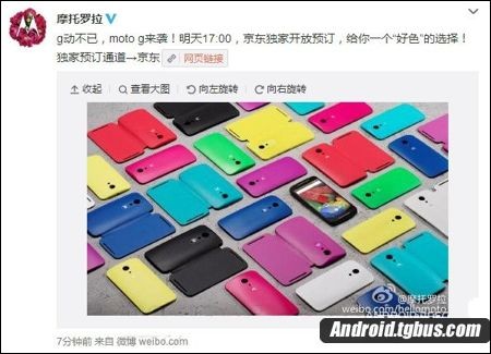 今天摩托罗拉通过官方微博宣布Moto G将于今天下午17点起在京东独家开放预订,而且似乎有多个颜色的版本可供选择,由于售价比较亲民,其销量应该会远高于Moto X。