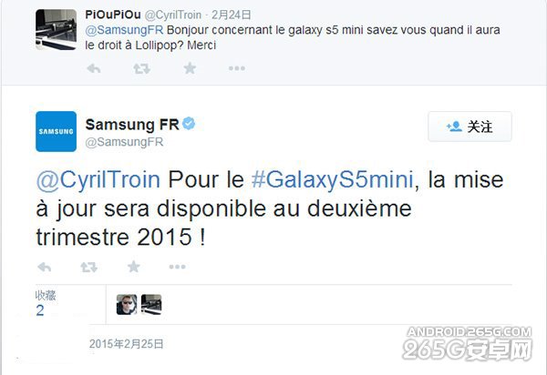 三星法国证实,Galaxy S5 mini会在今年第二季度收到安卓5.0更新的推送。其他市场的Galaxy S5 mini用户可能大致也会在这个时间收到安卓5.0更新。