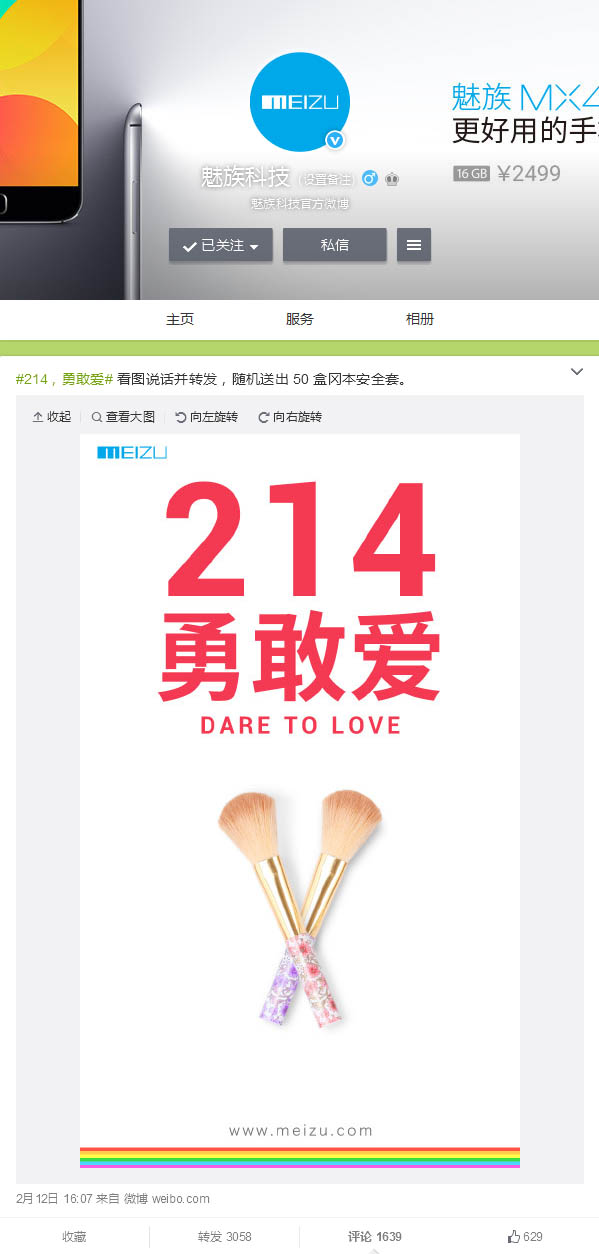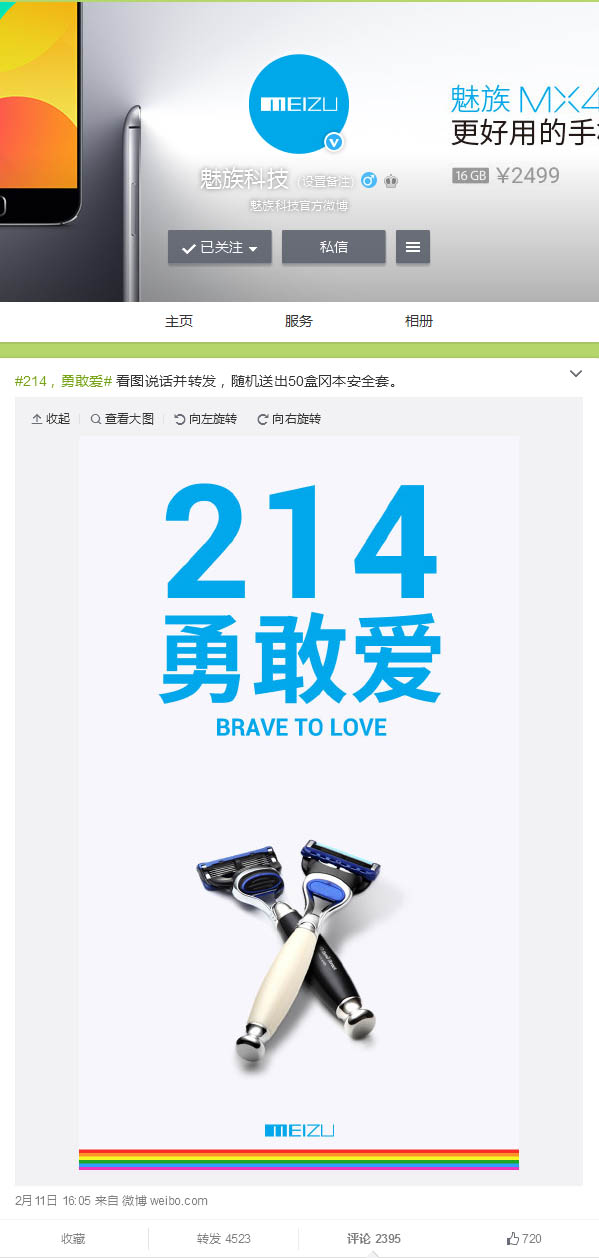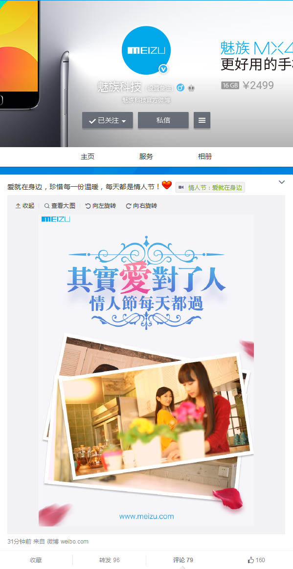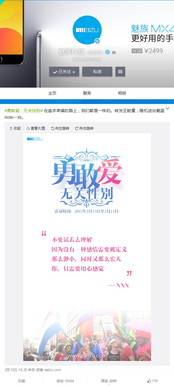 今天是情人节,魅族很应景的发布一则短片《情人节:爱就在身边》,称“其实爱对了人情人节每天都过”。可看完短片之后发现有些不对,讲述的并非传统的男女之情,而是百合之爱。其实,近期魅族一直在鼓励同性之恋,并在微博上发出了“勇敢爱,无关性别”的话题。魅族表示,在追求幸福的路上,我们都是一样的。