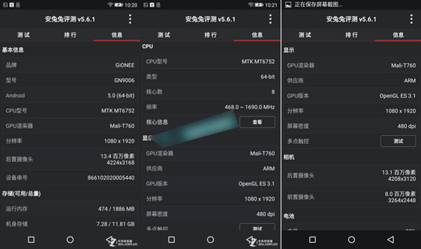 从上图我们可以看出:金立ELIFE S7搭载了联发科MT6752八核处理器,,搭配2GB内存和16GB存储空间,分辨率为后置1300万后置800万;