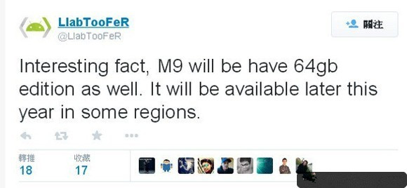 据HTC 开发商表示,除32GB之外,HTC One M9还将会有一个更大储存容量的64 GB版本,不过它将会在今年稍后时间才会登场,而且更有可能只会在部份地区发售,似乎未必所有地方都可以买到。