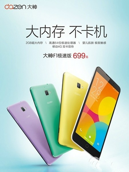 小米年初发布的红米2火爆了千元档,小米官网也为这款新机开启了每周一抢和预售两种销售模式。如果庞大的市场自然也有人眼红,这不,酷派今天就带来了一款699元的新机——大神F1极速版。下面就一起来看看了解一下吧!